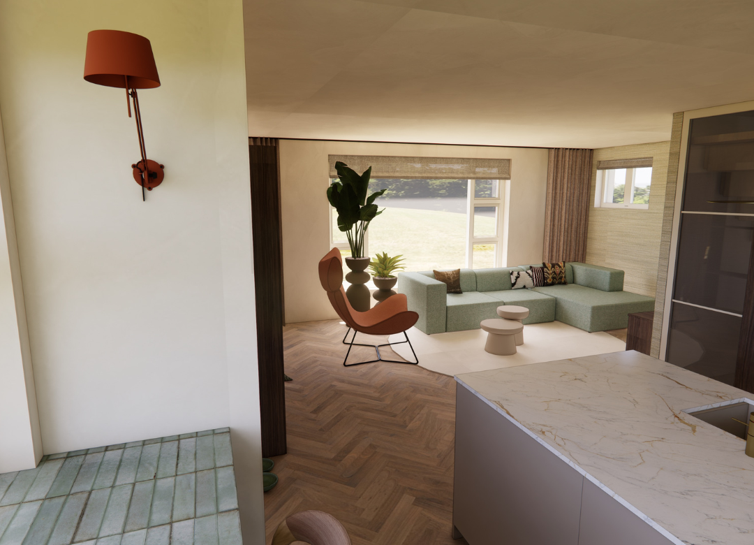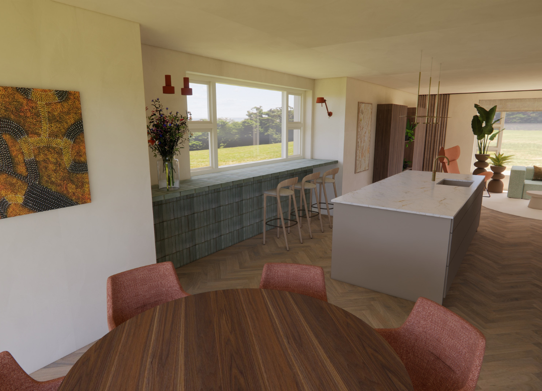 Biophilic Design vormt in mijn werk geen laag, maar een manier van kijken. Door aandacht te hebben voor licht, routing en overgangen ontstaat vanzelf een indeling die rustiger aanvoelt en beter werkt in het dagelijks leven.
